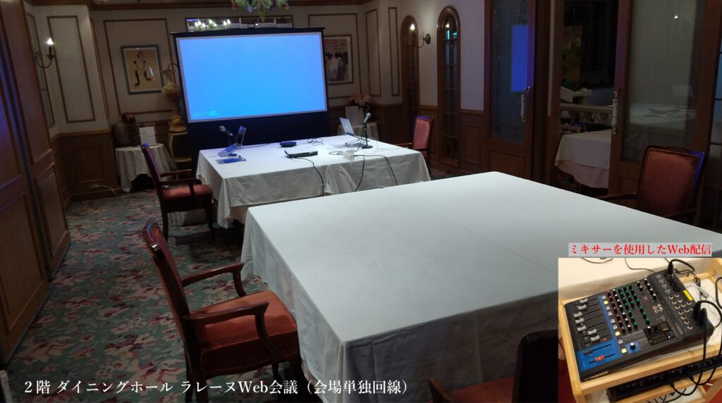- ミューズ・ラレーヌ別会場にてWeb配信が可能になりましたミューズ会場 ラレーヌ個室内それぞれにインターネット回線をご用意しました。 ラレーヌ内ではミキサー及びオーディオインタフェース接続し「集音マイクまたは通常マイク…