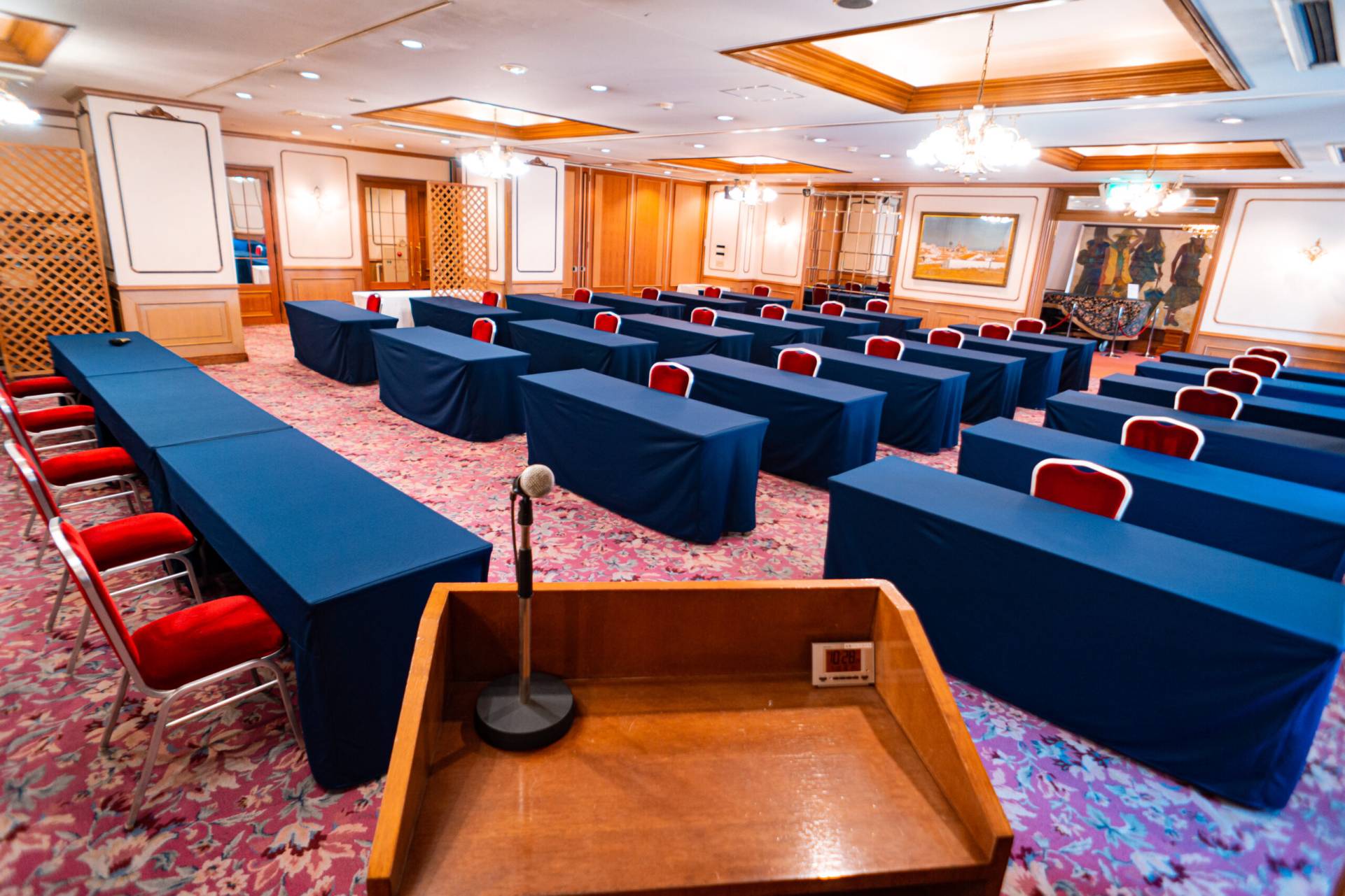 クラシカル・エレガンスな会場で、会議や講演会、展示会場としてご利用いただけます。講演会後の立食パーティなども承ります。
