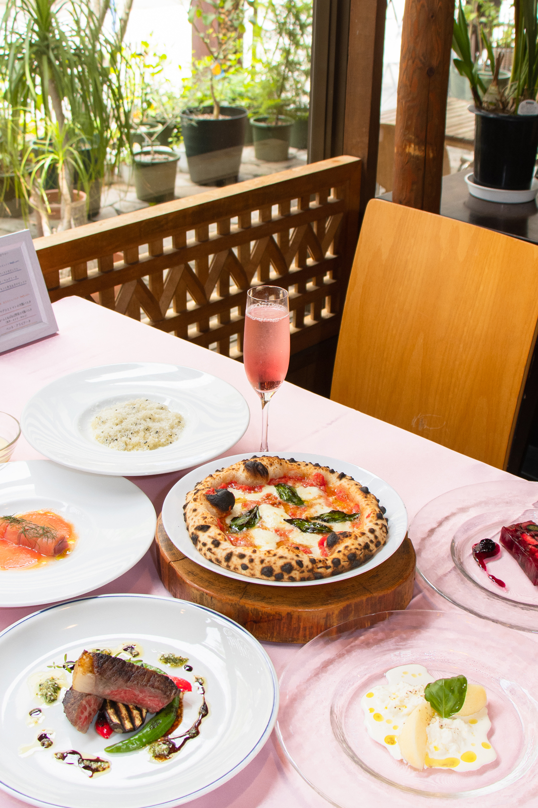 また前菜やパスタ、お肉・お魚料理にデザートも豊富に、美味しいワインやドリンクもご用意しております。ピッツァはテイクアウトにも対応します。